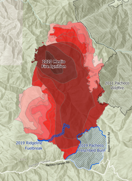 Read the Medio Fire Factsheet and explore the Great Santa Fe Fireshed Coalition website to learn about how previous treatments and fire professionals successfully managed the 2020 Medio Fire to protect homes and vital resources in our community.