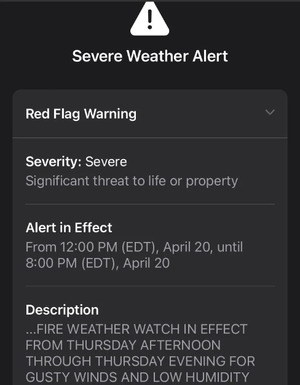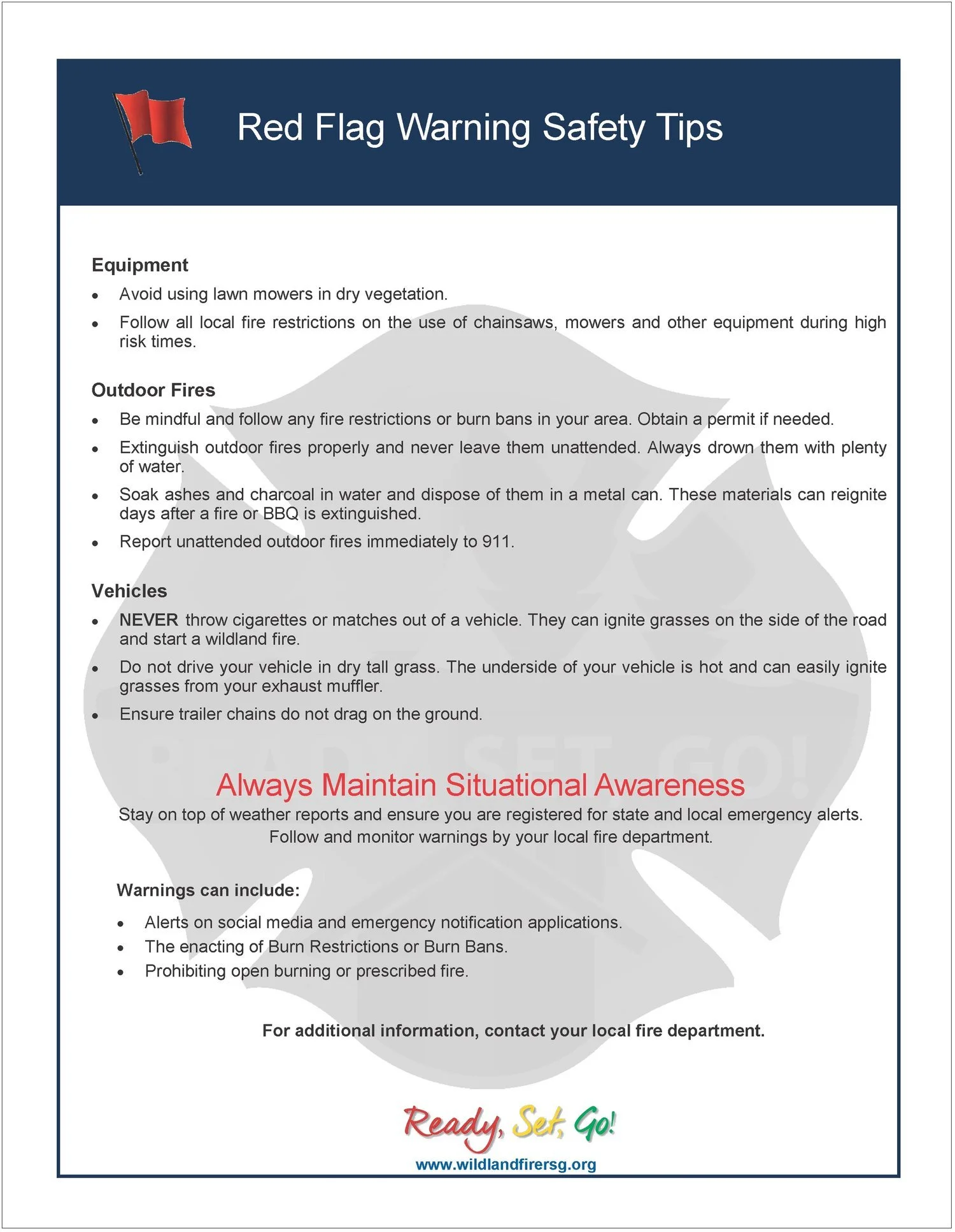 Educate your friends, family, and neighbors on what Red Flag Warnings are, what they mean, and how to respond when they see the warning pop up.
