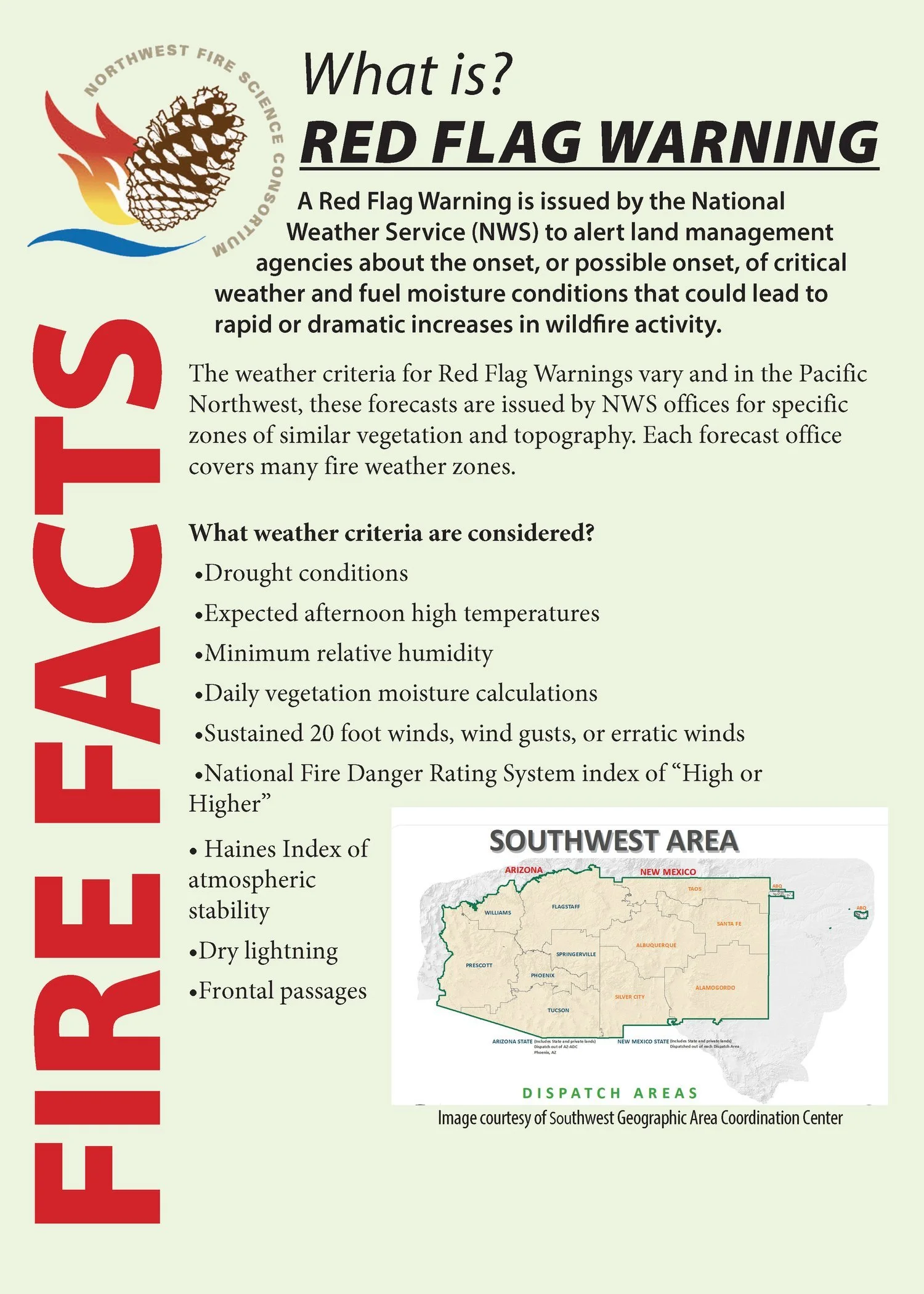 Picture this: you wake up to the early morning light streaming in your window and turn your head to greet the day. You notice tree limbs dancing in the infamous New Mexico spring winds, see that the leaves on the bushes are looking pretty piqued, and remember that it has been a while since it’s rained. Pulling out your smartphone, you open the weather app to check the forecast. There, at the top of the application, is an alert which reads “Red Flag Warning” from the National Weather Service. What does that mean?