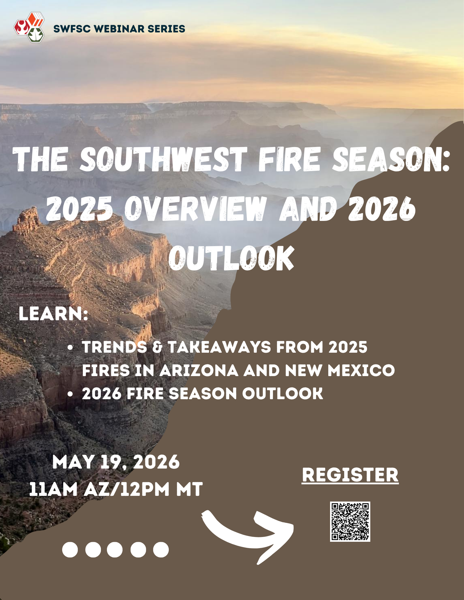 This webinar from the Southwest Fire Science Consortium will provide a review of the 2025 Southwest fire season, including trends, especially impactful individual incidents, and takeaways from the fires–and from our tactics and response. The presenters will also offer a 2026 fire season outlook based on the most up-to-date forecast from the NOAA predictive services.
