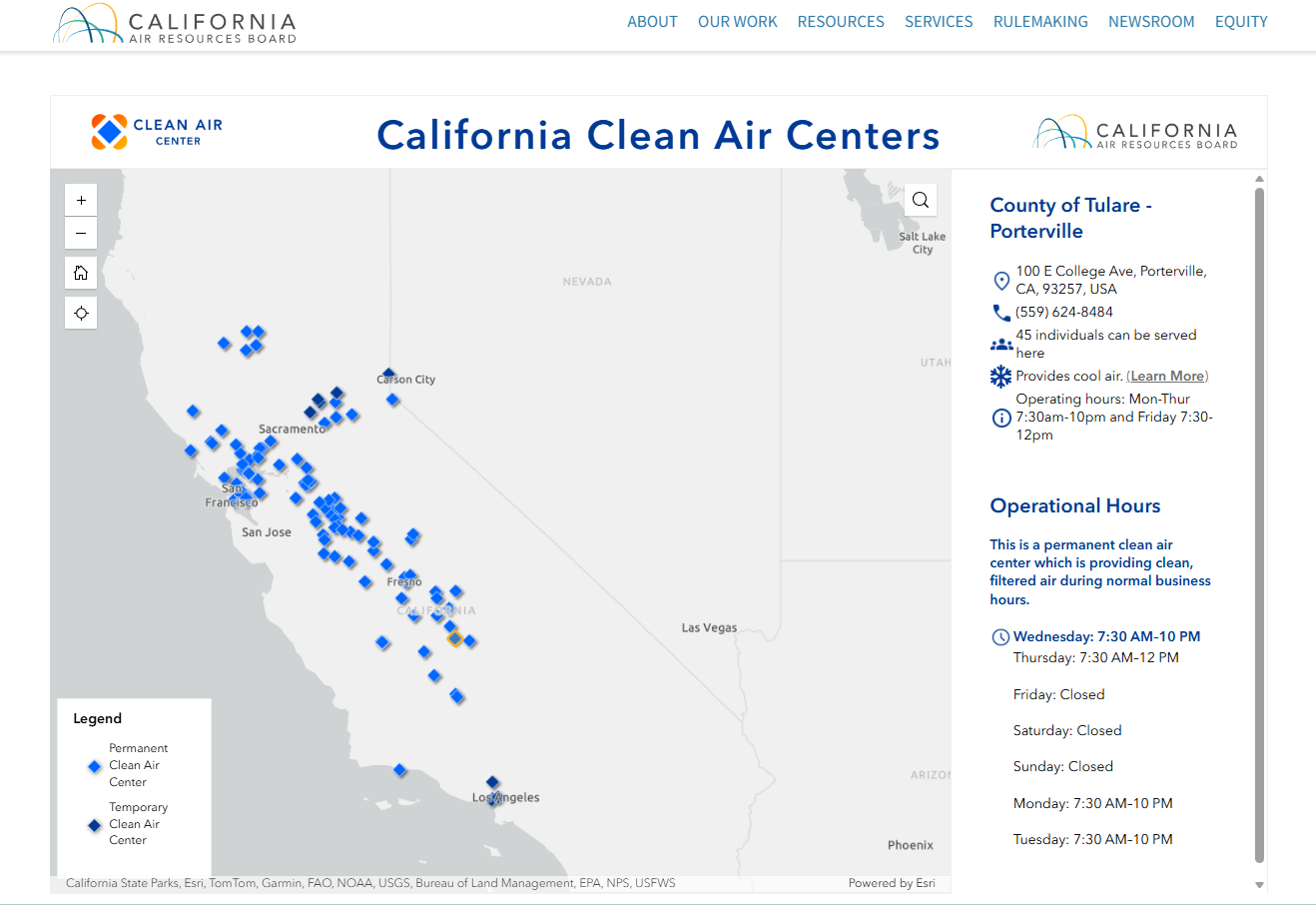 California created a map in collaboration with local air quality districts, to provide information about the location and services offered at Clean Air Centers in local communities statewide.