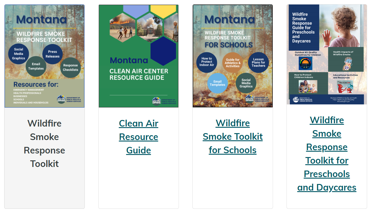 Montana DPHHS also designed toolkits to provide resources to emergency responders, health officials, school personnel and daycare providers to ensure community safety during a wildfire smoke event. All materials can be shared and rebranded with your organization.